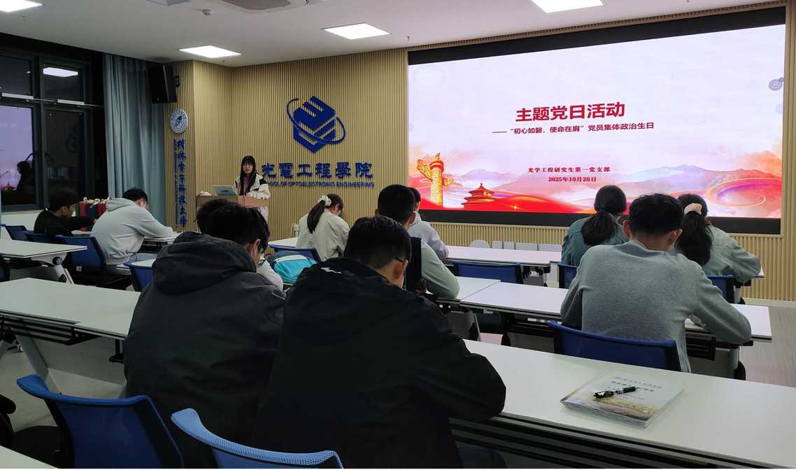 近日,光学工程研究生第一党支部在花江智慧谷2号楼311会议室开展“初心如磐 使命在肩”主题党日活动。