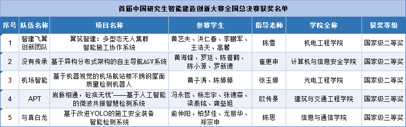 11月27日至28日,首届中国研究生智能建造创新大赛在南通大学落幕,经过激烈的角逐,我校研究生荣获全国二等奖3项、三等奖2项;学校获评“优秀组织奖”。