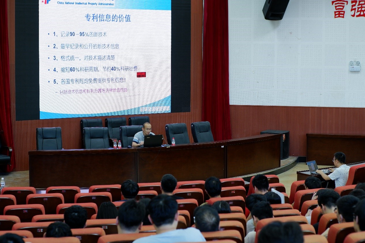 康飞老师不仅为同学们介绍了专利信息的价值及获益方式、专利的保护客体范围、专利的申请流程、发明创造取得专利权所需满足的条件、专利费用的减缴条件、专利审查流程中的公共服务等等,还为同学就专利申请中的关键点进行了详细说明。报告后,康飞老师与现场同学热烈讨论,让同学对普通国家和PCT国际专利申请有了更加深入的了解。