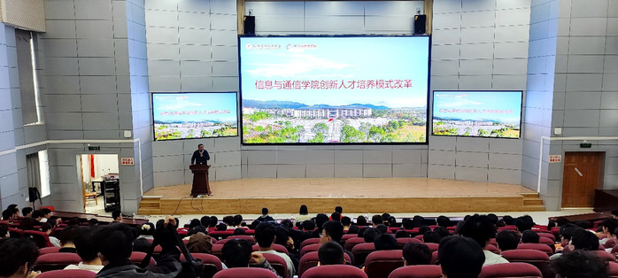 近日,信息与通信学院在花江校区报告厅举行创新人才培养模式改革宣讲会。学院党委副书记展领主持会议并致辞,副院长张法碧作主题报告。学院相关负责人及2023级通信工程专业学生参加。