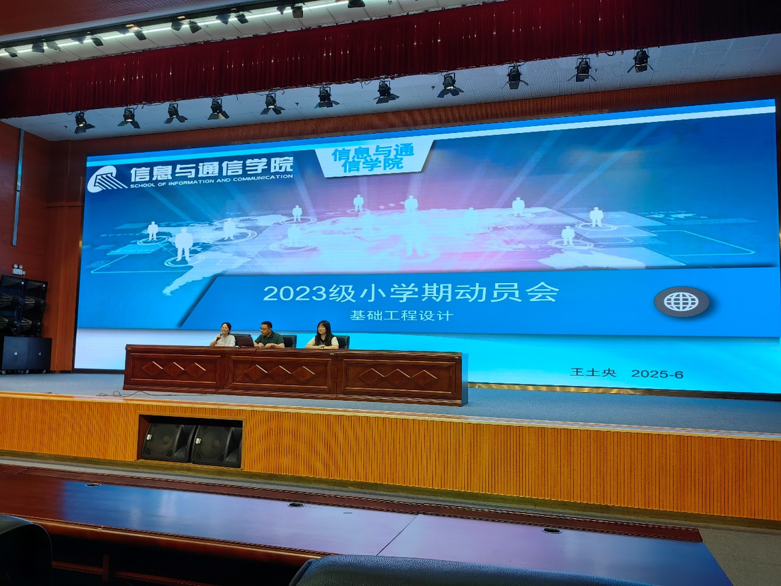 6月23日,信息与通信学院于大礼堂召开2023级基础工程设计动员大会。学院教师王土央、2023级辅导员及全体2023级学生参加了本次会议。会上,王土央老师从基础工程设计的意义、选题原则、硬件制作与调试、报告撰写等方面进行了系统讲解。本次动员大会明确了课程目标与要求,增强了同学们完成工程设计的信心,为后续实践环节顺利开展奠定了良好基础。