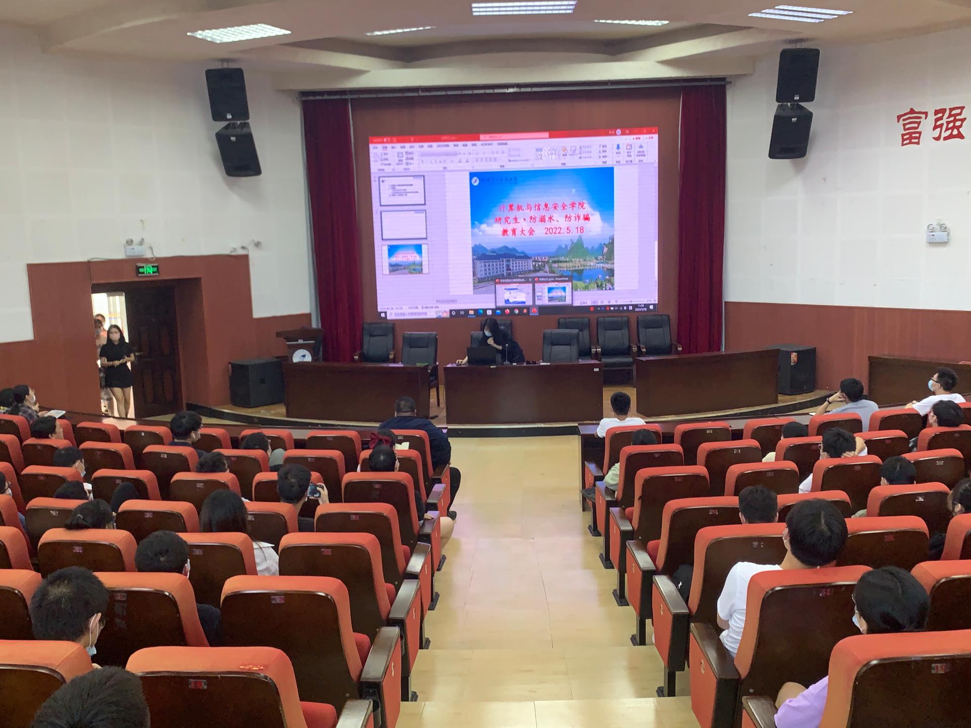 随着夏季的来临,为进一步加强校园安全教育,保障学生的生命以及财产安全,增强防溺水安全意识提高预防诈骗能力,我院组织研究生于5月18日下午在三教一楼报告厅开展防溺水·防诈骗安全教育大会,全体研究生参会。会上,辅导员提醒同学们由于近期广西降水量较大,夏季水位升高,禁止同学们私自下河游泳;并在会上安利同学们下载“反诈”APP,同时列举近期区内大学生受诈骗的案例,再次提醒学生提高安全防范意识。
