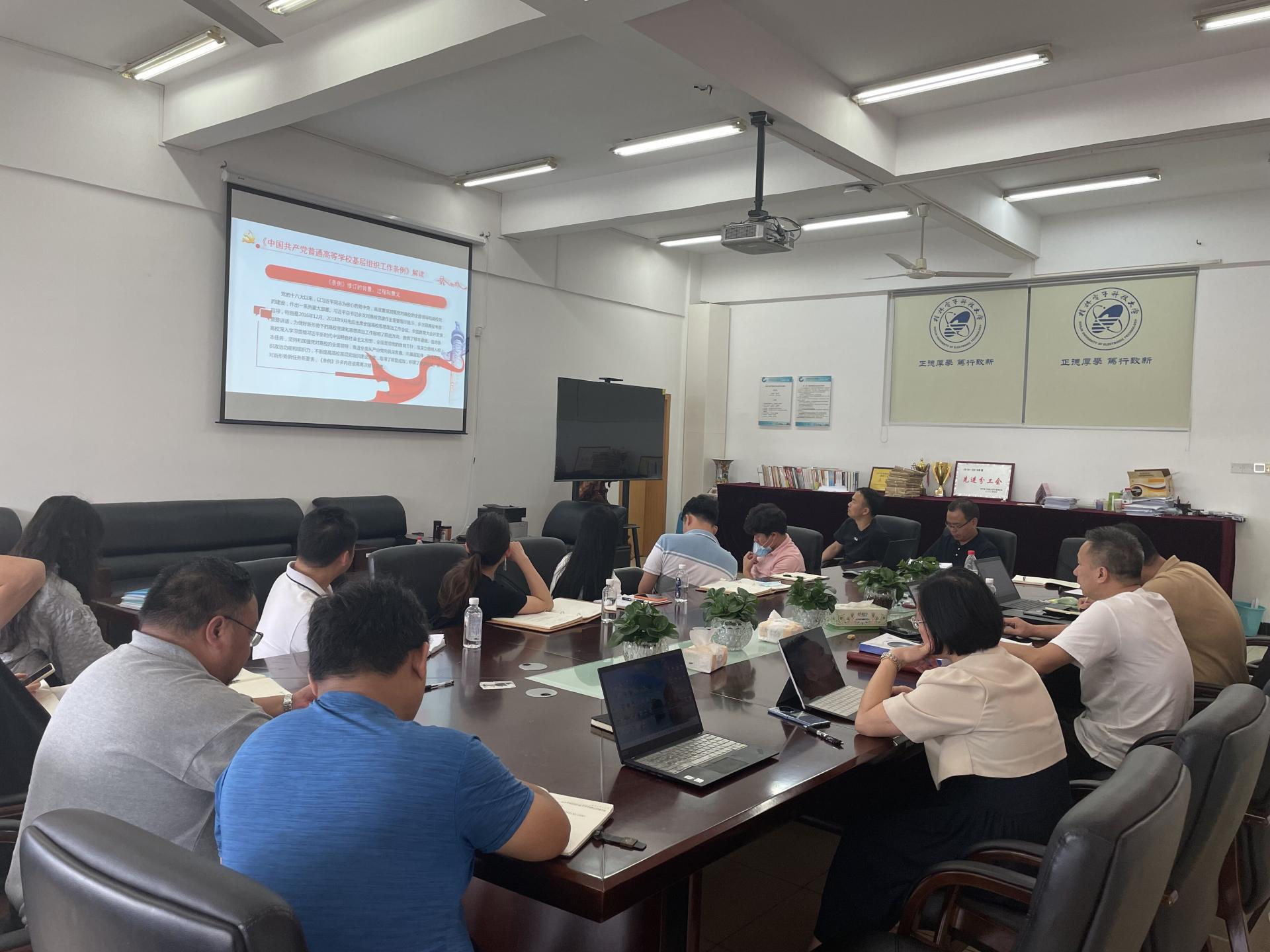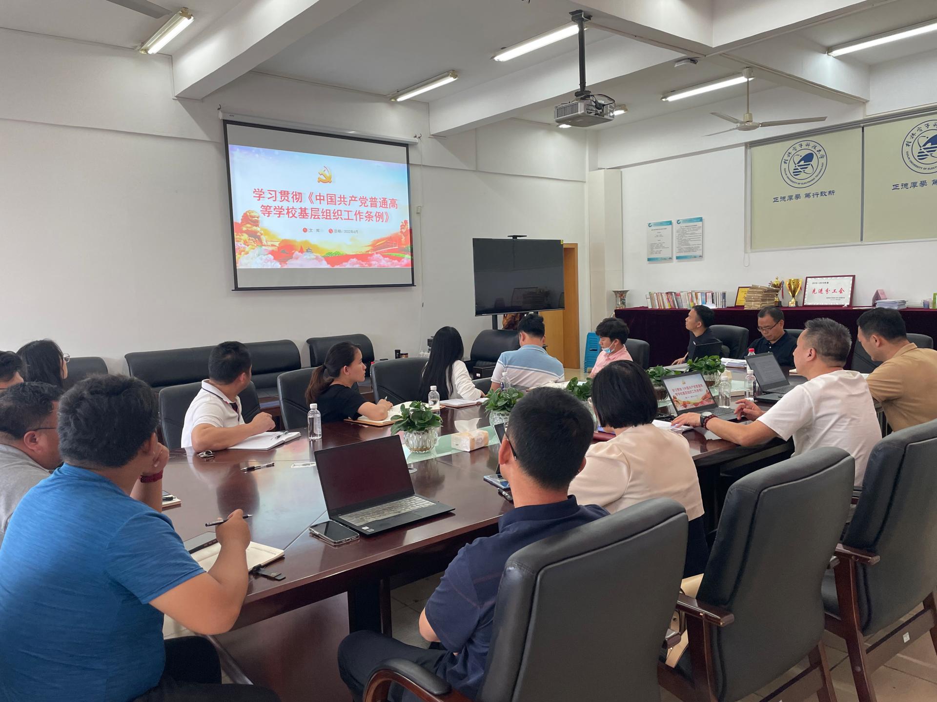 文辉通过党课形式向参加学习会的党委委员、各支部书记等讲授关于《中国共产党普通高等学校基层组织工作条例》修订的背景、过程和意义,并深入解读《条例》全文。文辉书记指出,《条例》作为高校党的建设的基本法规,对高校基层党组织工作出了全面规范。学院全体党务工作者要认真研读《条例》全文,把文件精神贯彻落实到具体的实践工作中,党支部书记要通过“三会一课”、主题党日等形式开展对《条例》的学习。