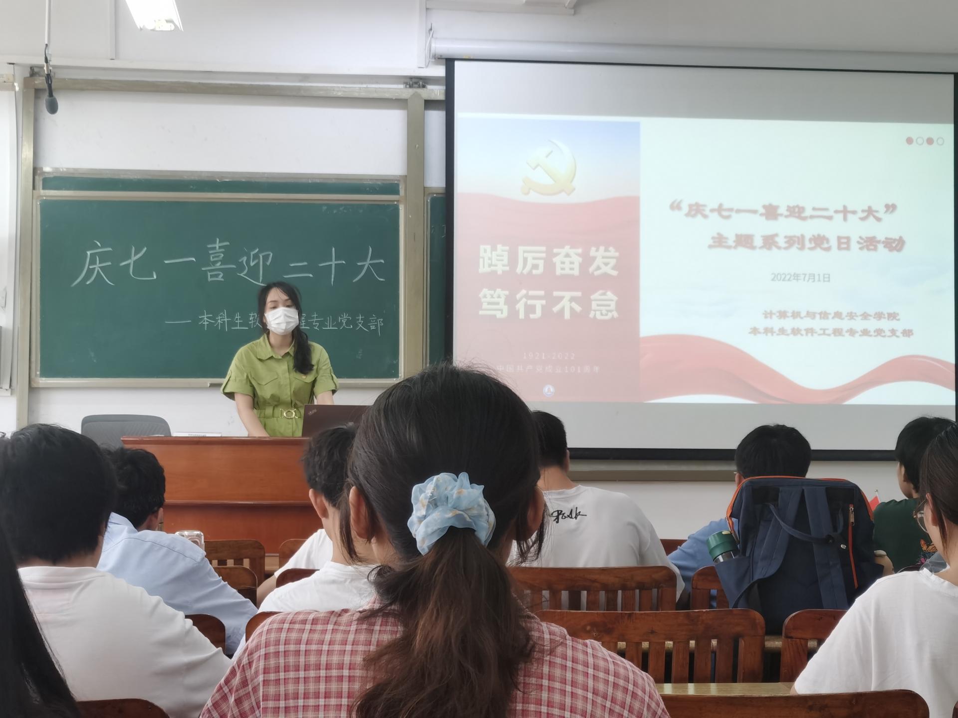 2022年7月1日,本院本科生软件工程专业党支部于五教206开展了党日活动,党日活动主题为“庆七一喜迎二十大”。支部书记及全体在校党员参与本次党日活动,活动由支部书记李向敏同志主持。