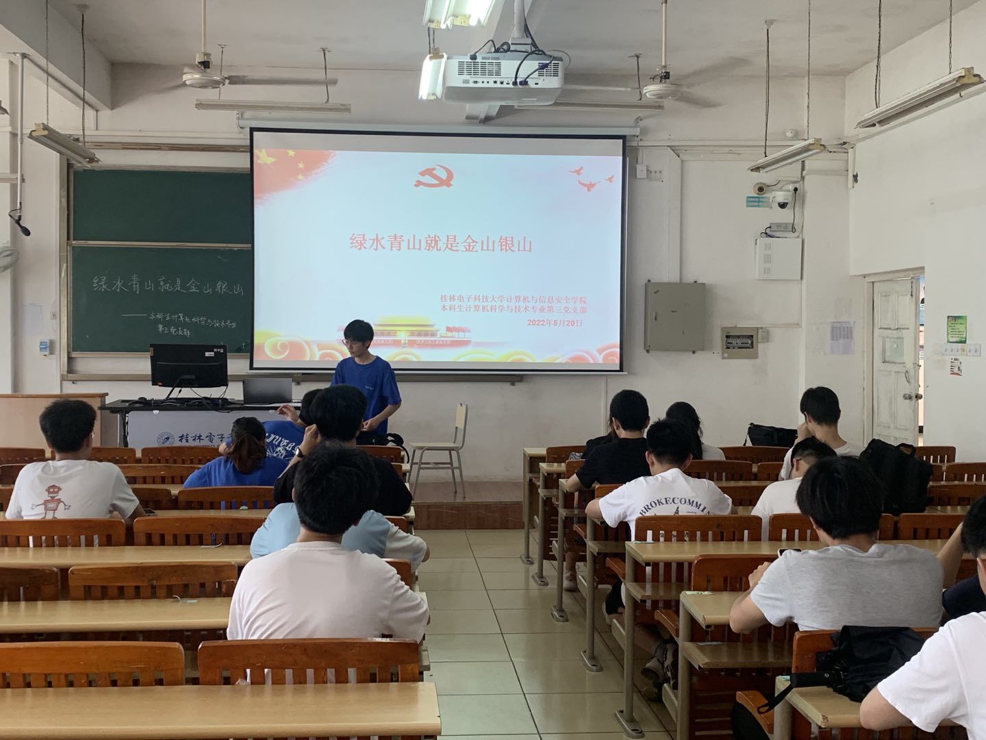 在中国共产党成立101周年之际,以及为迎接党的二十大胜利召开,2022上半年,本科生计算机科学与技术专业第三党支部以学校研究制定的《桂林电子科技大学绿色学校创建工作实施方案》为指导,制定了支部绿色校园主题实践活动方案,并紧紧围绕“贯彻生态文明思想,坚持绿色发展理念,共建绿色文明校园”为主题开展了各项学习和实践活动。
