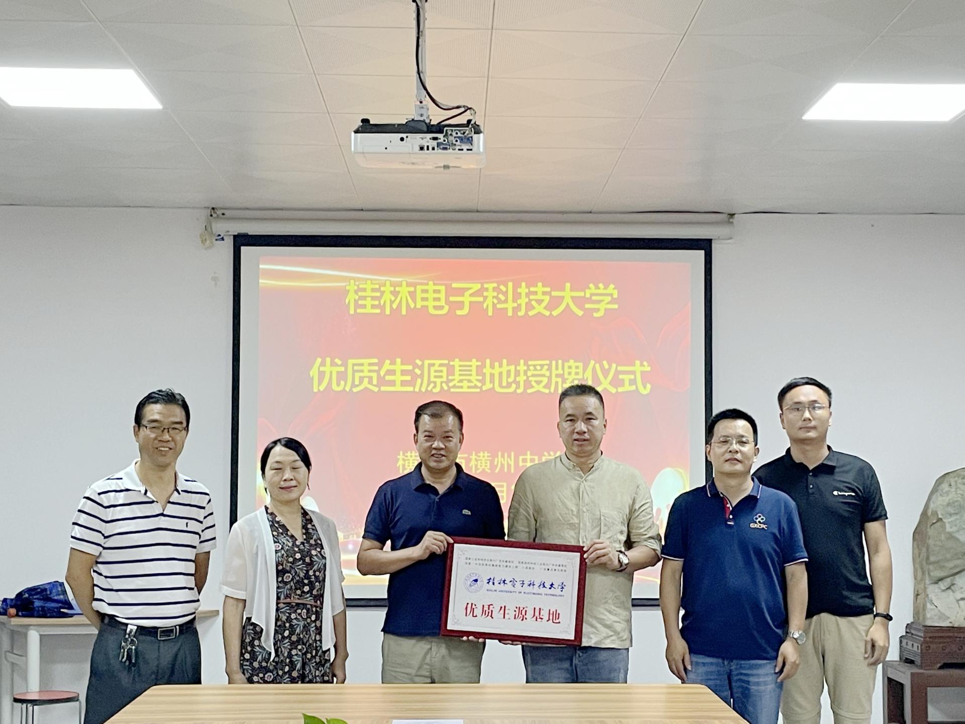 8月20日下午,学院党委书记文辉、学科竞赛与学生创新活动中心主任王子民博士赴横州市横州中学签订“桂林电子科技大学优质生源基地”建设协议并授牌。