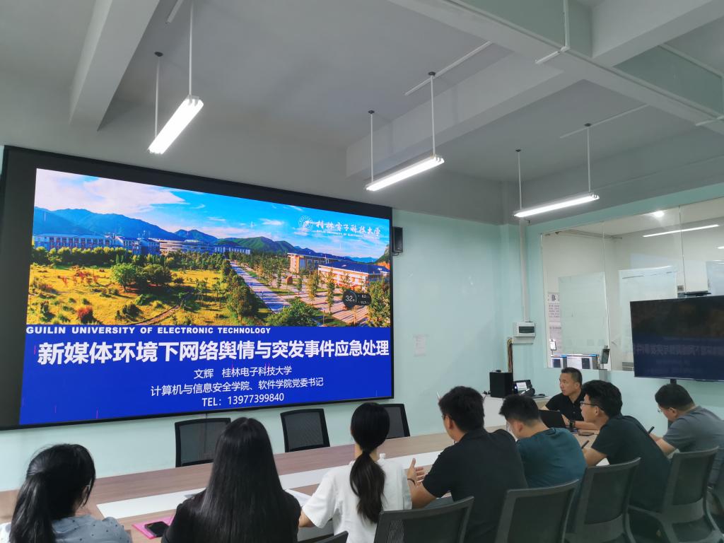 9月15日,计算机与信息安全学院在五教110召开学生安全稳定及意识形态工作布置会暨新媒体环境下网络舆情与突发事件应急处理培训会,学院党委书记文辉、副书记刘堂宇、学院全体学工干部参加,会议由学院党委书记文辉主持并做主讲。