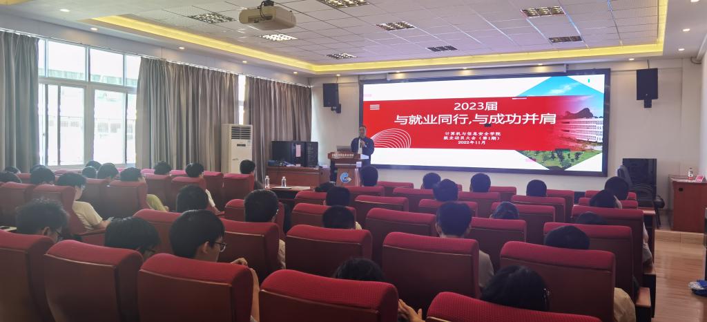 为全面贯彻落实就业优先战略,不断提升毕业生就业质量。2022年11月1日下午,计算机与信息安全学院在5教506A教室举办2023届毕业生就业动员大会。学院党委书记文辉、副书记刘堂宇出席会议,毕业年级辅导员及2023届毕业生参加会议