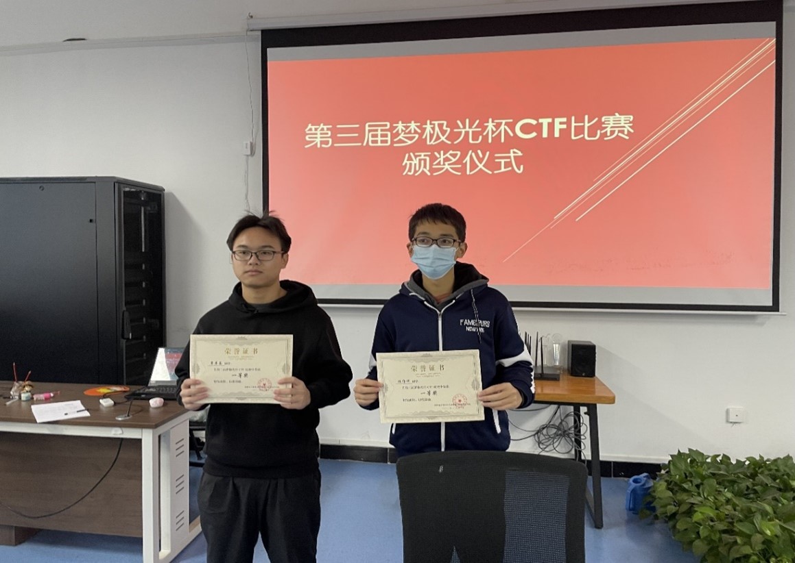 为激发学生的信息安全学习氛围,促进信息安全社团传帮带作用,我院于2022年11月20日启动第三届“梦极光杯”CTF比赛。比赛采取CTF(Capture The Flag,夺旗赛)形式,通过线上资格赛和线下决赛,进行Web渗透、二进制漏洞挖掘利用、密码分析、取证分析、逆向分析、安全编程等方面的角逐。