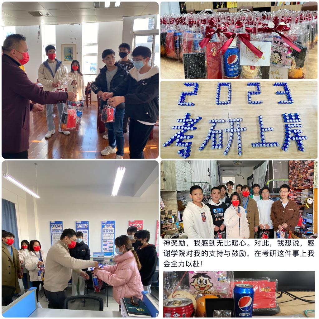 12月14日,学院组织了考研慰问活动,为正在备战考研学子送上了一份份暖心加油包。学院党委书记文辉、党委副书记刘堂宇与考研学子面对面交流,鼓励他们调整心态,积极迎考,提升考研信心,全力冲刺。