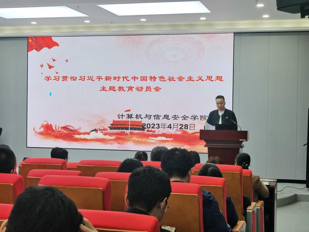 2023年4月28日下午,计算机与信息安全学院在花江校区1号楼106会议室召开学习贯彻习近平新时代中国特色社会主义思想主题教育动员会,会议由学院党委书记文辉主持。