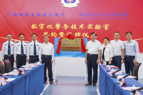 11月1日,我校与自治区公安厅共建数字化警务技术实验室签约暨挂牌仪式在南宁市举行。自治区副主席、公安厅党委书记、厅长杨维林出席仪式并讲话。我校党委书记唐平秋,自治区公安厅党委副书记、常务副厅长罗贤瑞出席仪式,共同为数字化警务技术实验室揭牌。