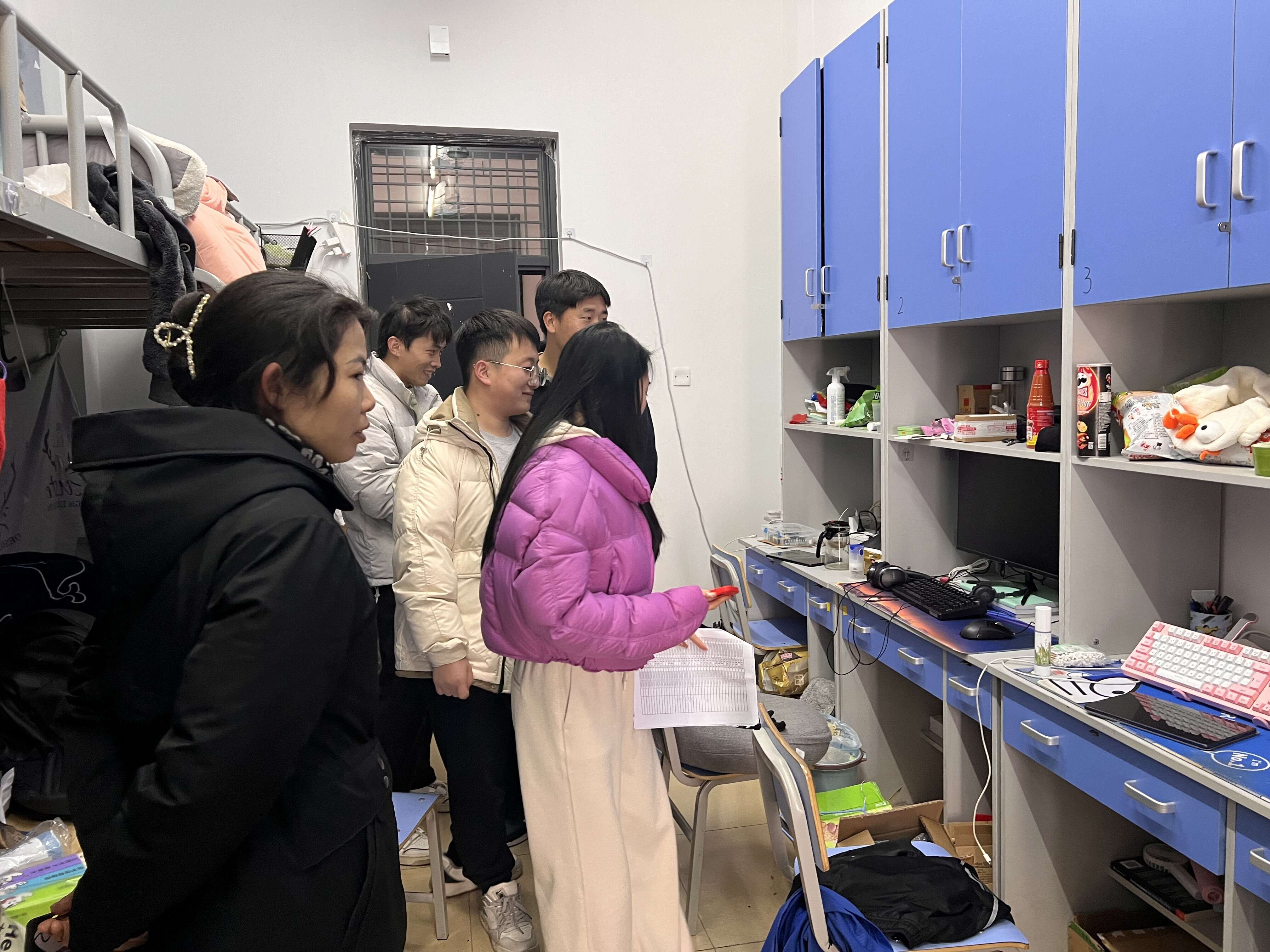 为进一步提高同学们的安全意识,排查寝室安全隐患,了解同学们的宿舍生活状态,促进对学生的日常管理,为大家创建一个良好的学习生活休息的环境。2月29日下午对学院研究生宿舍进行了突击检查。这次检查的重点是宿舍安全、文明礼仪、寝室卫生、楼道消防、违规电器、甩线飞线、设备缺损等情况,促使同学们对用电安全和寝室卫生更加重视。
