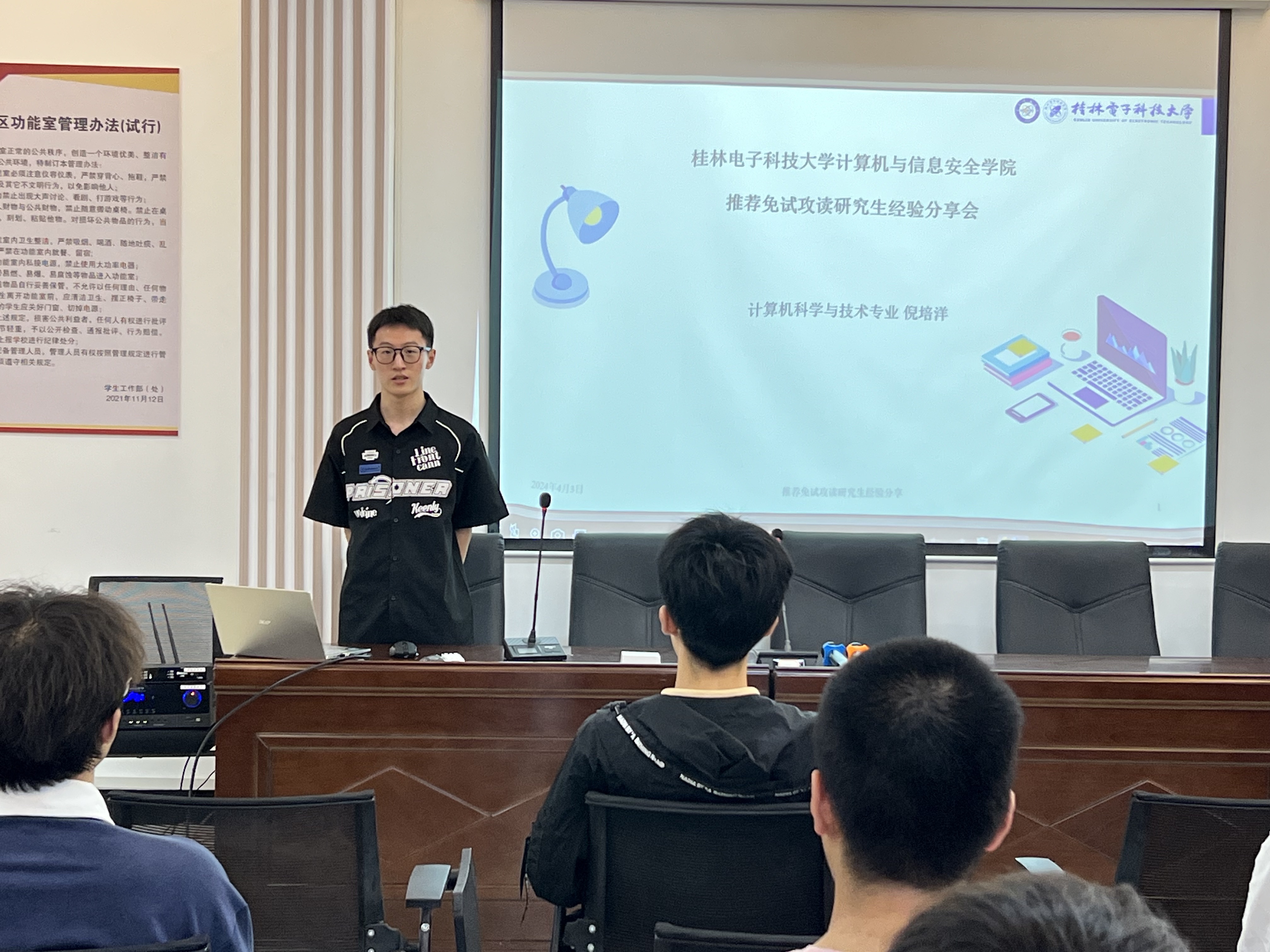 4月3日,学院在学生公寓F区39栋105报告厅举办了2024届计算机科学与技术、智能科学与技术专业推免学生经验分享交流会。此次活动,由学院辅导员韦顺忠主持,2024届推免学生代表进行分享。