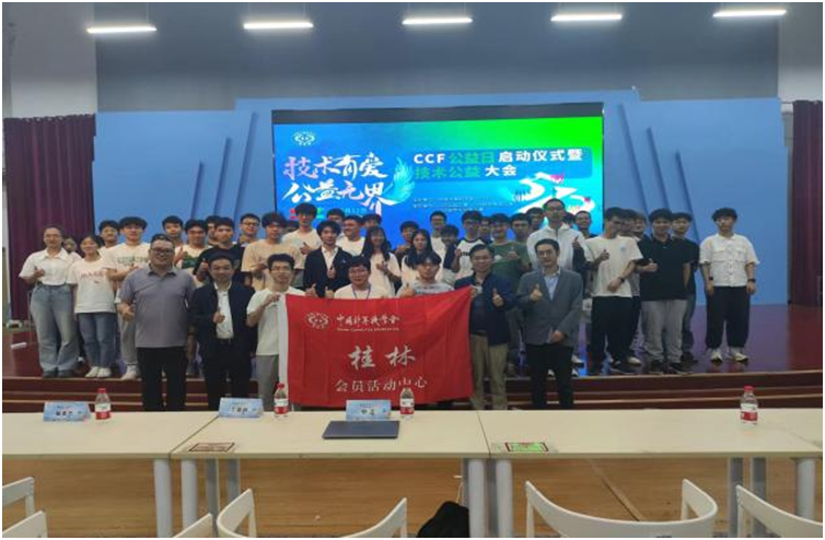 CCF主办的首届CCF公益日暨技术公益大会,以“技术有爱、公益无界”为主题,汇聚了中国技术公益领域的实践者及专家,共同探讨用计算技术赋能公益。大会于5月12日在苏州CCF业务总部举行主会场,同时29+城市分部联动。5月12日下午,CCF桂林分部将CCF公益日技术科谱活动带进了桂林电子科技大学。