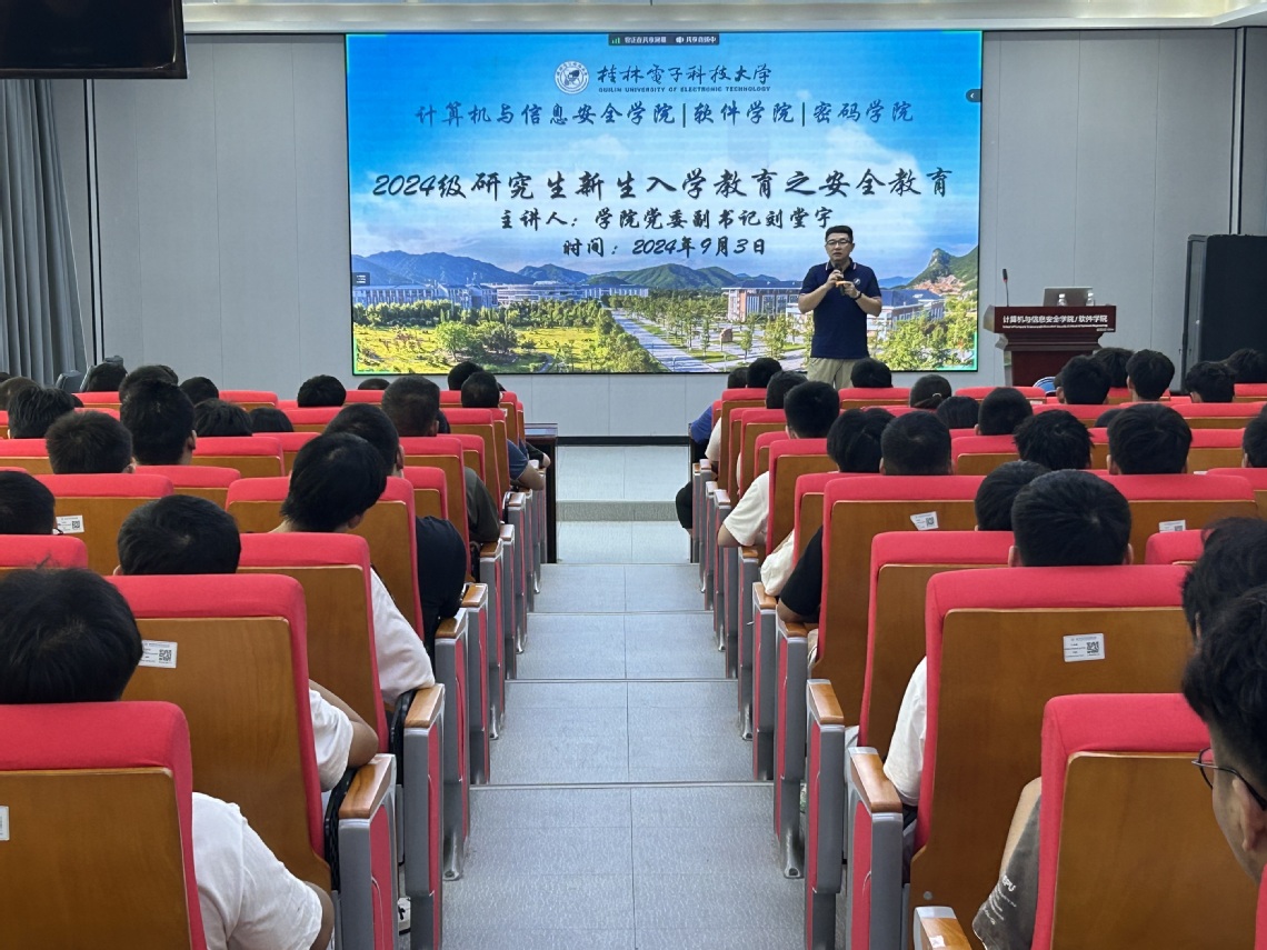 为进一步增强我院2024级研究生的安全意识,帮助学生掌握基本的安全知识和技能,切实筑牢保障学生身心健康发展的安全防线,助力新生们顺利平安地度过大学生活,9月3日上午,在慧谷1号楼106会议室、5教5503会议室同时开展2024级新生入学安全教育讲座,主讲人学院党委副书记刘堂宇,全体新生参加,辅导员主持。会上,刘堂宇针对网络舆情、电信网络诈骗、禁毒、校园安全、财产以及人身安全、防溺水、心理安全等情况展开详细的真实警示案例分享,最后向新生强调要做好自我防护,遵守好校园规定,同时向新生们讲解学校、学院的规章制度,提醒各位新生注意校园学习生活的网络安全、卫生安全以及宿舍用电安全,以最佳的状态迎接大学生活。