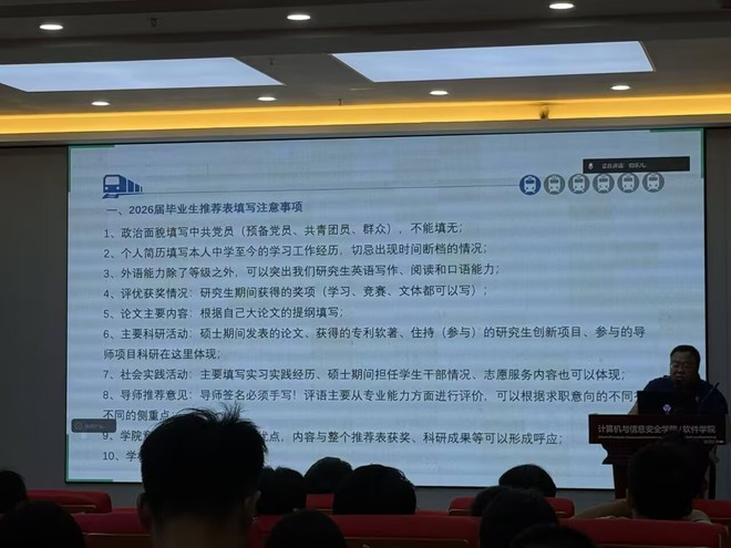 近日,我院在花江慧谷1号楼106会议室开展研究生就业指导主题教育。通过解读毕业推荐表填写、专题教育、就业数据分享及简历优化培训等形式,引导加强2026届毕业生深刻理解个人职业规划与国家战略需求的辩证关系。