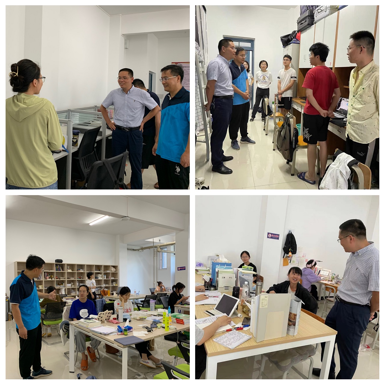 2022年07月26日7月24日,商学院党委书记张金顺、院长张发明、副书记师晓婧、副院长花均南以及各年级辅导员一同走访研究生实验室、考研自习室和各年级学生宿舍,看望我院暑期留校学生。