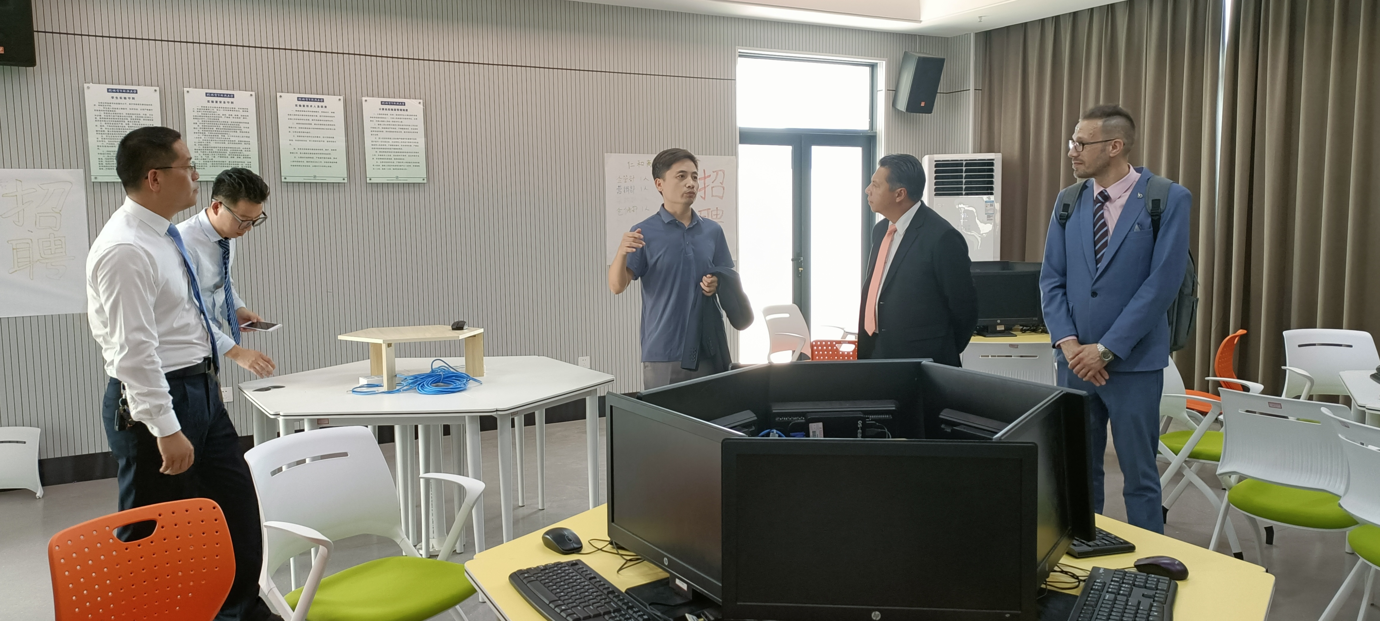 Richard SOPARNOT等先后参观了计算机与信息安全学院、商学院教学设施,对我校先进的教学设施做出了高度的评价,认为我校的教学设施足以支持合作办学的课程教学需求。