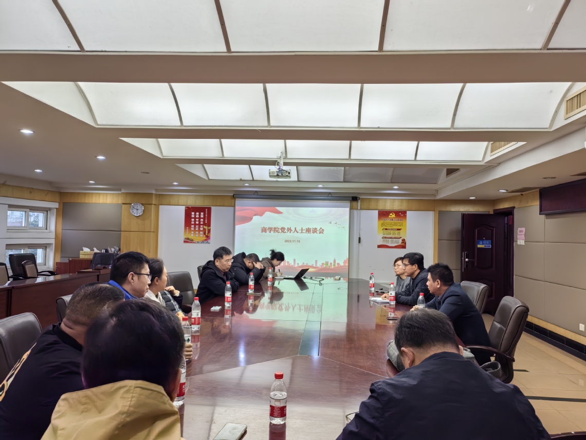 2023年11月28日11月16下午,商学院在金鸡岭校区十教403会议室召开党外人士座谈会,会议由学院党委书记张金顺主持,党委副书记师晓婧、党委统战委员、副院长花均南以及学院党外人士参加了座谈会。