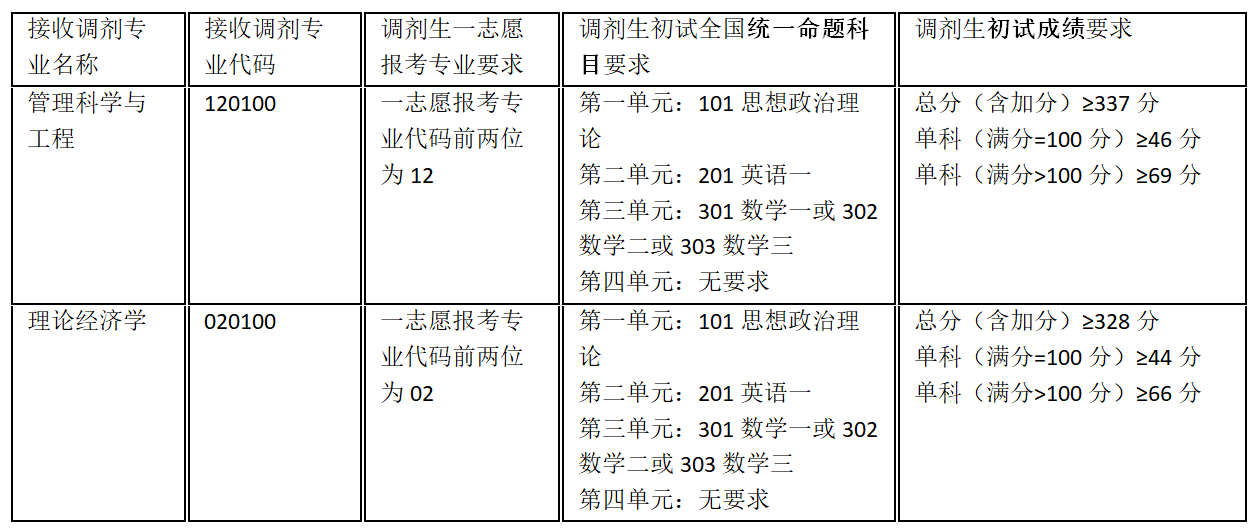 5.初试科目与调入专业初试科目相同或相近,其中全国统一命题科目应与调入专业全国统一命题科目相同。调剂过程中,全国统一命题科目认定采取就高不就低的原则,调剂生初试全国统一命题科目数量不得少于调入专业的全国统一命题科目数量;