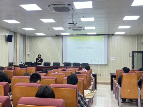 会上,韩圆老师以《互助关爱,共同成长》为题,主要围绕以下几个方面展开讲座:心理委员的角色定位、心理健康的基本知识、心理危机的识别与应对、心理委员的自我照顾。