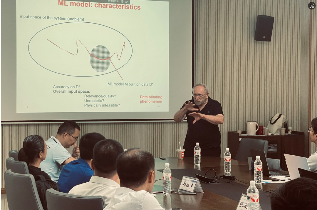 Witold Pedrycz教授以“机器学习”作为报告会切入点,从机器学习中数据与知识融合、当前模型过度依赖数据存在根本缺陷等方面进行深入浅出的剖析,重点强调机器学习应从“纯数据驱动”转向“数据-知识协同”并通过结构化整合领域知识提升模型的鲁棒性、可解释性和边界外推能力,同时警惕AI技术在学术应用中的伦理风险。报告主题内容及具前沿性和启发性,与会师生展开深入交流,耐心解答师生们提出的疑问和困惑,现场气氛高涨。此次报告不仅拓宽了师生们的国际学术视野,也为未来的研究方向提供了新的思路。