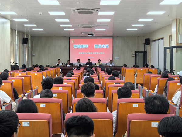 2025年09月23日9月12日,商学院以“研途相伴 智启未来”为主题在花江校区文科楼501报告厅召开2025级硕士研究生新生见面会,学院党委书记张金顺、院长张发明、党委副书记王辉、副院长贺星星、副院长于飞、院长助理李余辉等老师以及商学院2025级全体硕士研究生参加本次会议。