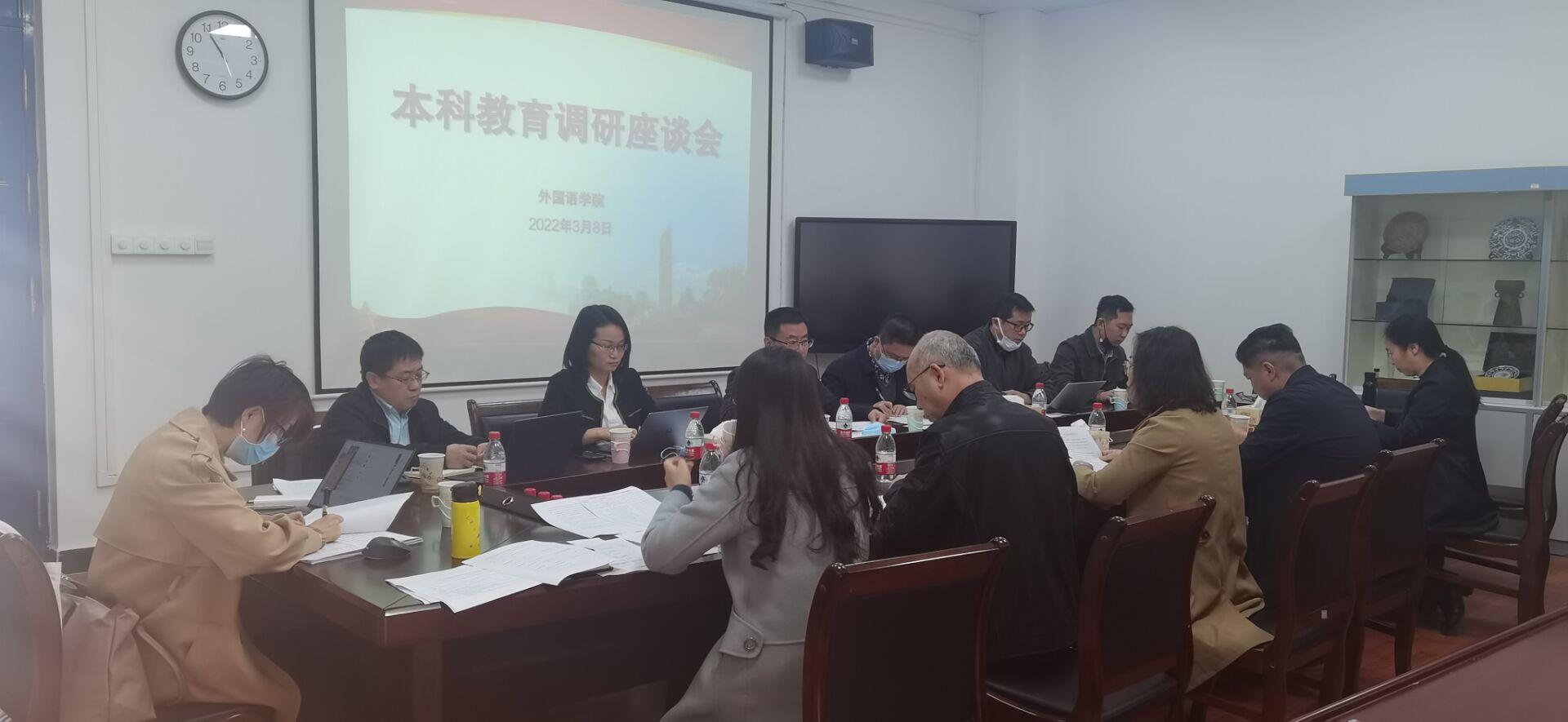 3月8日上午,副校长潘开林来外国语学院调研指导工作,教务处全体班子随同调研。外国语学院班子全体成员参加调研会。