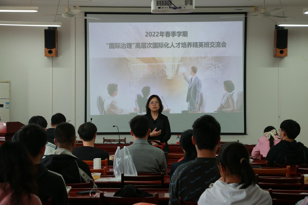 学校开办“高层次国际化人才培养精英班”,旨在培养兼具家国情怀、创新能力、国际视野和全球治理能力的高质量国际化精英人才。精英班依托教育部“高层次国际化人才培养创新实践项目”开设。课程采用“线上+线下”授课模式,线上课程由全球排名前30的知名院校的专家全英文授课,线下课程由外国语学院、法学院等相关学科领域资深教师授课。学生达到相应条件可获得“英语”辅修专业证书或“国际治理”微专业证书。