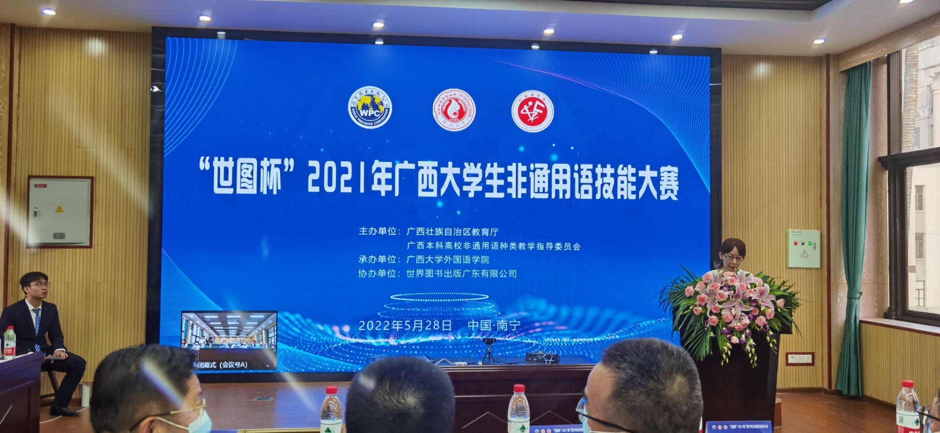 该项比赛由广西壮族自治区教育厅、广西本科高校非通用语种教学指导委员会主办,每年12月左右举行。去年由于疫情原因,延迟到今年5月28日举行。本次比赛采用线上线下相结合的方式,比赛选手线上参赛,评委线下评分。据悉,这是广西非通用语技能大赛开办以来,我校大学生首次取得第三名的好成绩。