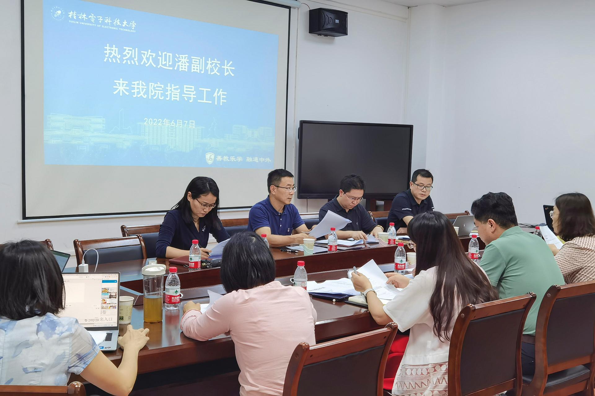 6月7日下午,学校副校长潘开林一行4人到外国语学院,就学校学士学位授予工作实施细则的修订工作进行调研并举行座谈会。学院领导班子及大学英语教师代表参加会议。