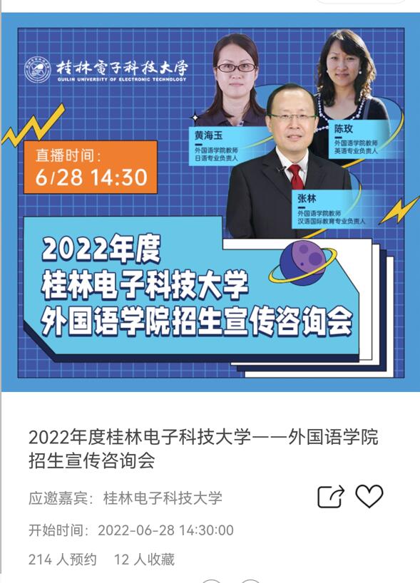 6月28日,我院召开线上招生宣传工作,我院院长黄宇元,副院长汪庆华、英语专业负责人陈玫、日语专业负责人黄海玉、汉教专业负责人张林、辅导员罗春玲参加招生线上直播宣传。就我校概况、专业设置、就业形势、招生政策等方面给予详细介绍,与毕业生及家长进行详细交流,为广大考生提供信息服务和志愿指导。线上宣传观看人数高达4600余人,考生互动积极性高。