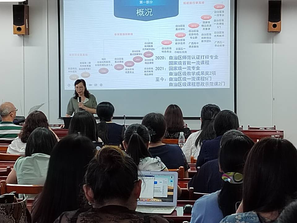 2022年7月1日下午,我院邀请南宁师范大学外国语学院院长李晓教授给全体教师做了题为《研思赋能:一流专业及一流课程建设》的讲座。讲座由黄宇元院长主持,外院全体教职工聆听了讲座。