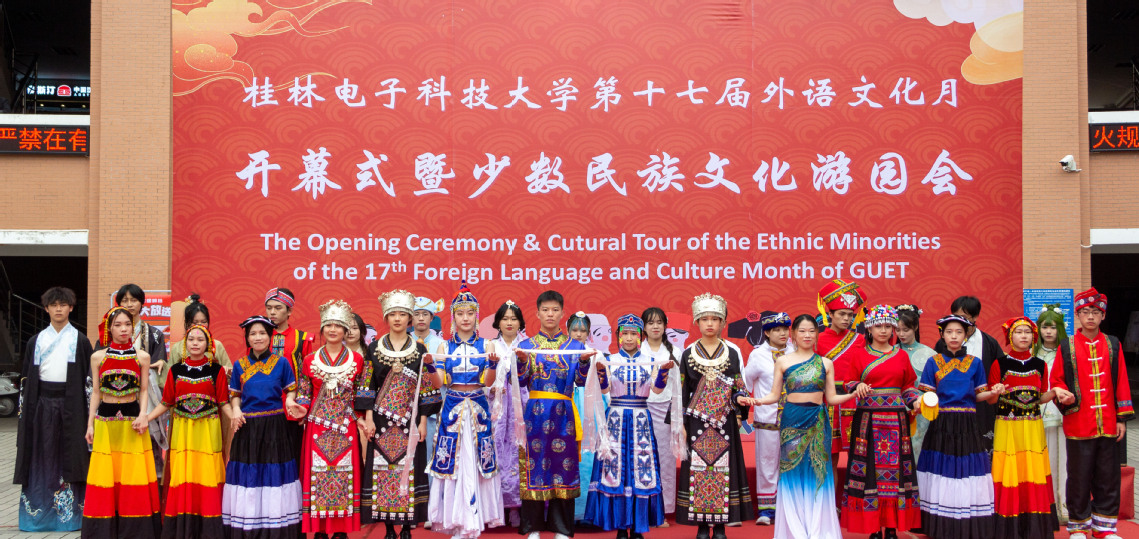 5月12日下午,第十七届外语文化月开幕式暨少数民族文化游园会在花江校区中央食堂前广场举行。统战部、学工部(处)、教务处、国际合作与交流处、校团委、外国语学院等部门领导以及各学院师生线上线下参加开幕式。