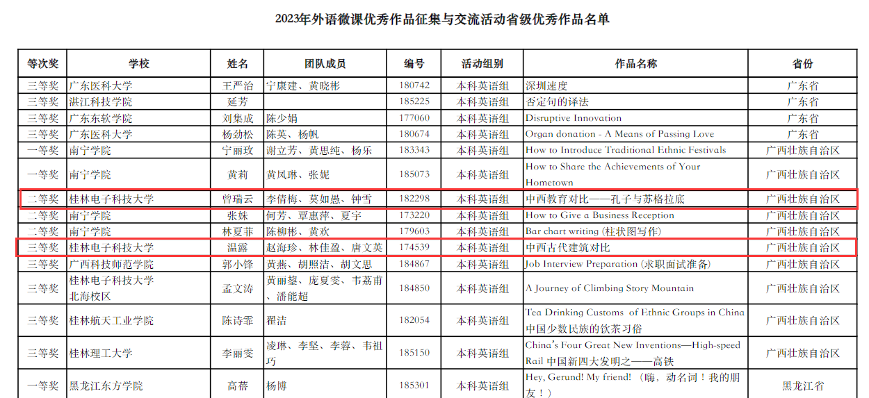 近日,由高等教育出版社、全国高校教师网络培训中心与《中国外语》编辑部共同举办的“2023年外语微课优秀作品征集与交流活动”公布了省级优秀作品名单。我院曾瑞云团队(曾瑞云、李倩梅、莫如愚、钟雪)和温露团队(温露、赵海珍、林佳盈、唐文英)在进入省级征集与交流环节的1089件作品脱颖而出,分别获得了二等奖和三等奖。