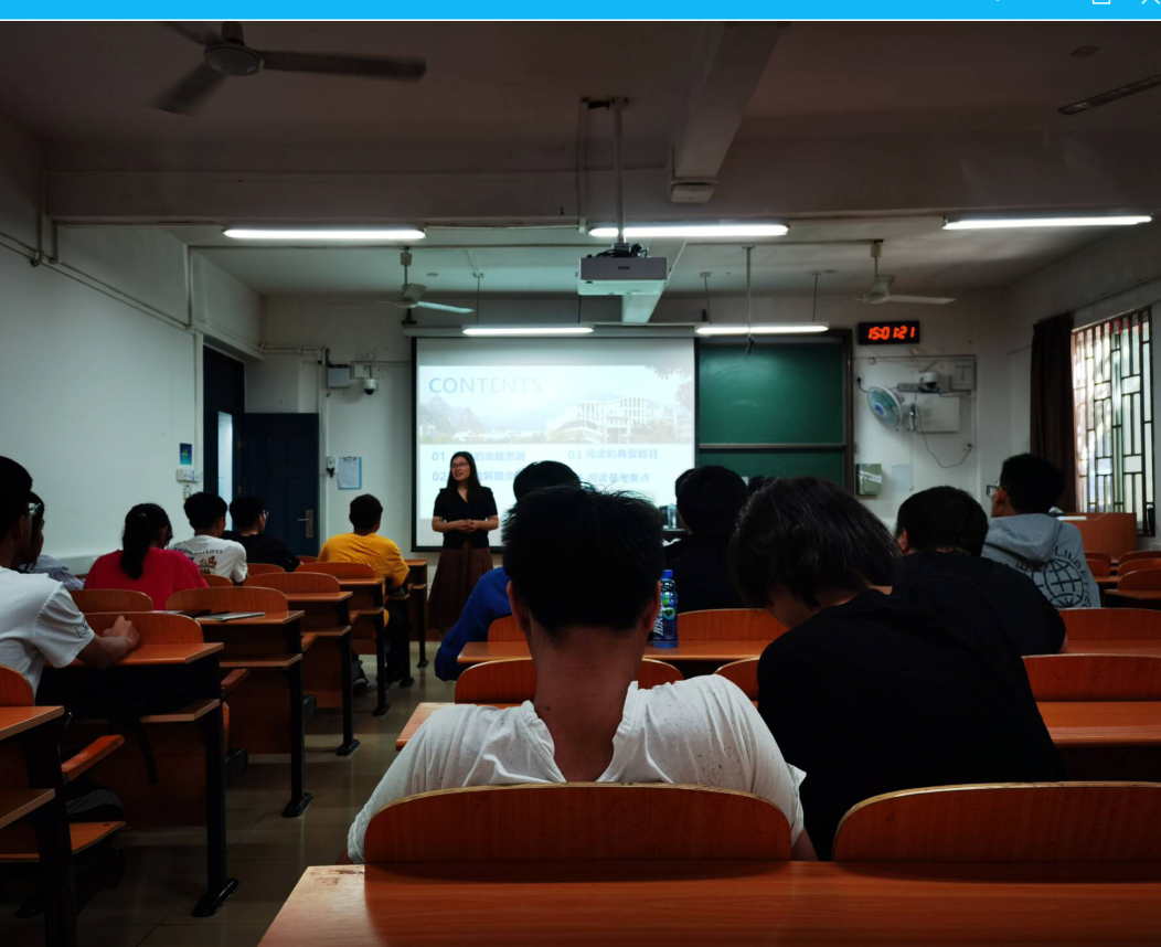 讲座包含以下四个方面的内容:阅读题的命题思路、阅读题的解读步骤、阅读的典型题目、阅读题的备考重点。郑老师的讲解耐心细致,重点突出,实用性强。讲座期间,郑老师和参会学生交流频繁,互动热烈,学生们纷纷表示受益匪浅。