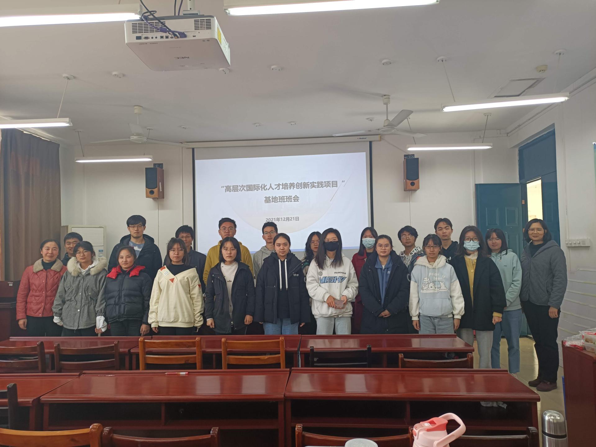12月21日中午,学院在3505会议室召开了“高层次国际化人才培养创新实践项目”基地班班会,英语系主任廖桂宇主持会议,学院副院长汪庆华、英语专业负责人莫秀兰、基地班班主任李攀攀以及基地班的同学参加会议。