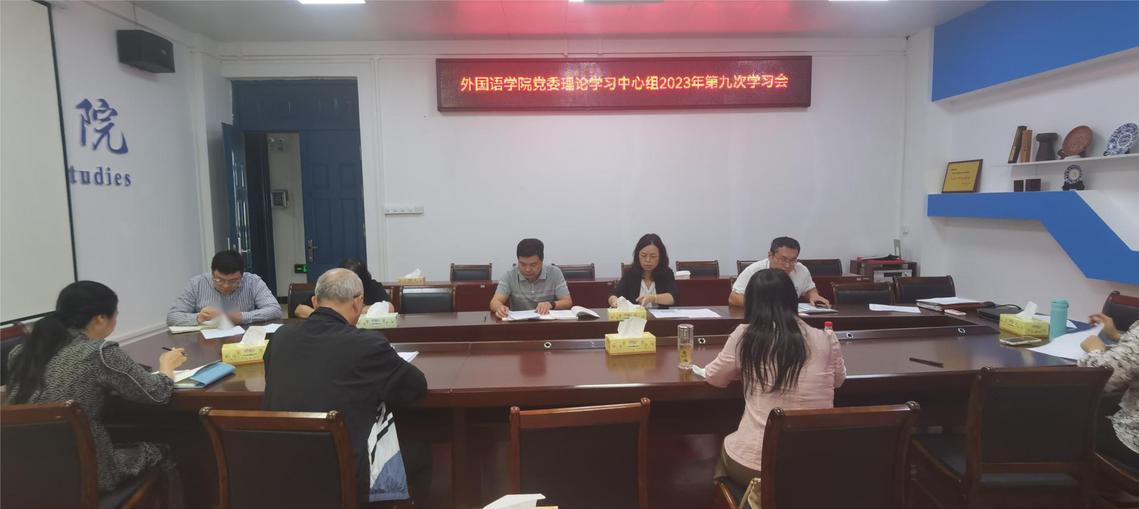 近日,外国语学院党委在花江校区第三教学楼3408会议室召开年度党委理论中心组第九次学习会议。学院党委委员、领导班子成员参加会议,会议由学院党委书记杨丹江主持。
