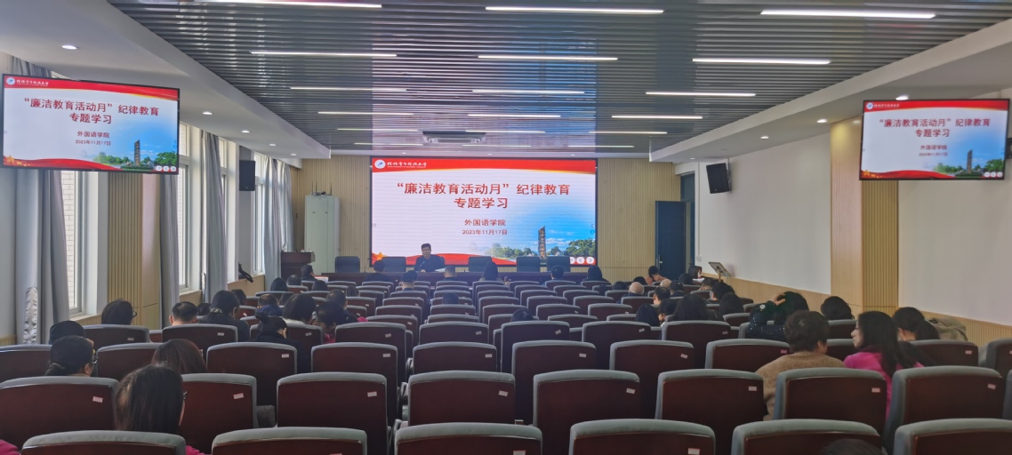 11月17日,学院在花江校区第三教学楼3305会议室组织开展“廉洁教育活动月”纪律教育专题学习。会议由学院党委书记杨丹江主持,学院全体教职工参加会议。