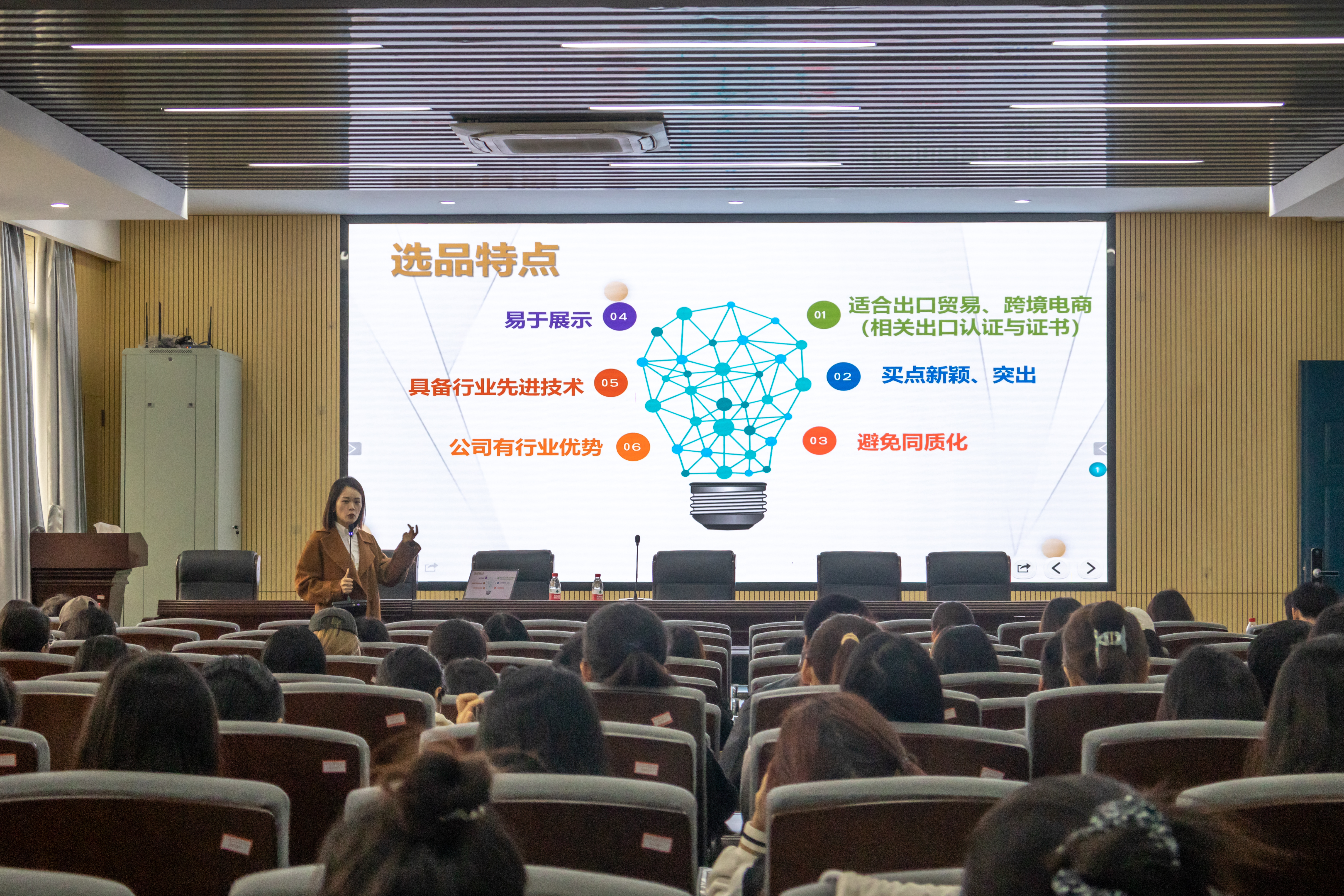 李靖航首先向同学们介绍了她带队参加全国商业精英挑战赛国际贸易竞赛的经验。随后,围绕比赛环节李老师向学生详细介绍如何选择竞赛产品、准备产品发布会,如何进行展位设计,备战展位谈判以及如何进行备赛训练。