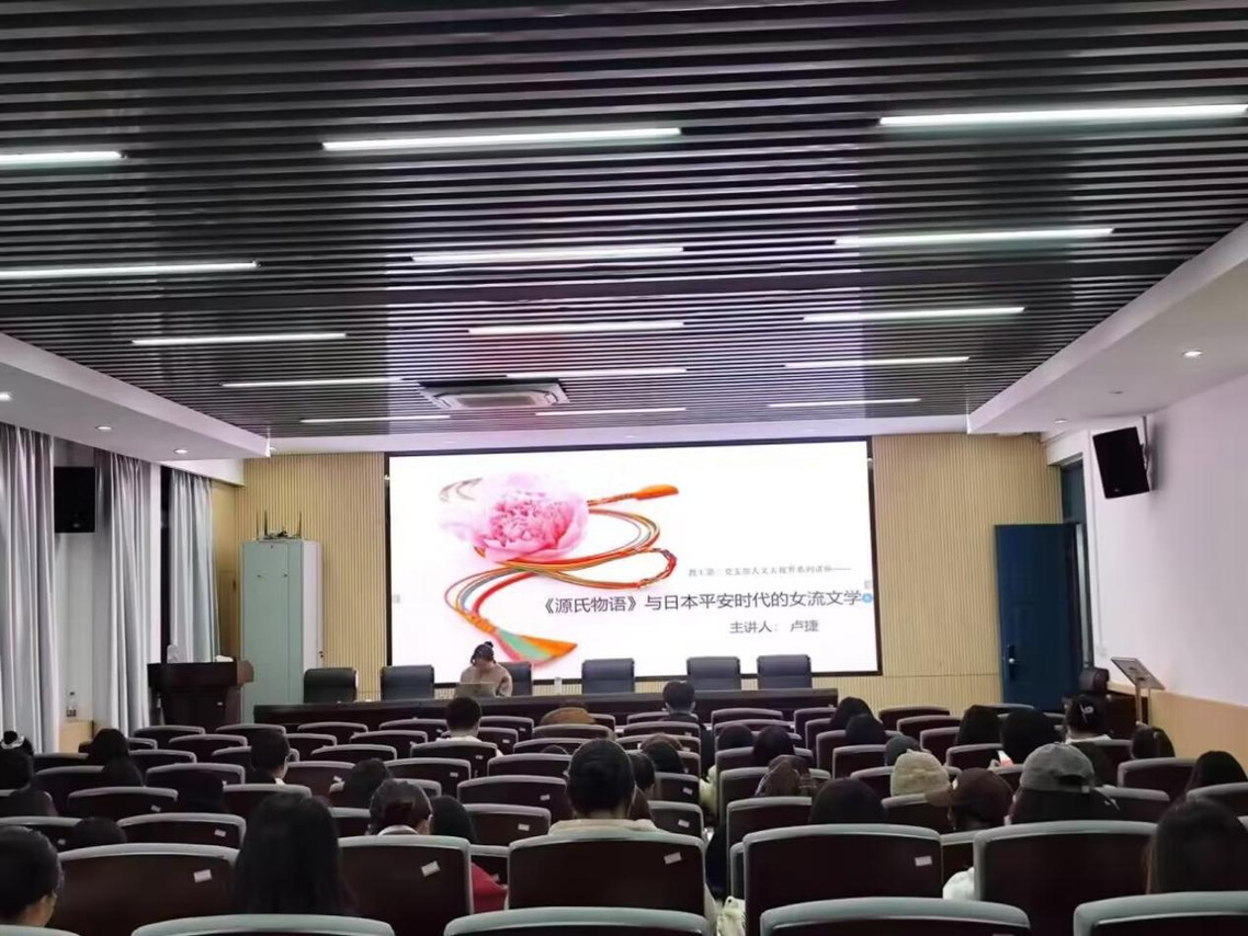 11月30日,教工第三党支部在花江校区第三教学楼3305报告厅开展了“党建+”品牌活动“人文大视界”系列讲座,支部党员卢捷老师作了题为“《源氏物语》与日本平安时代的女流文学”专题讲座,学院100余名学生参加。