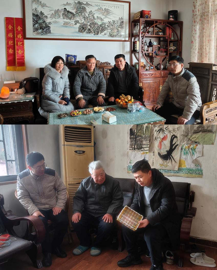 2024年1月22日,寒雪中透着暖意,在春节即将到来之际,我院党委书记杨丹江、党委副书记耿建亮、院分工会主席吕阳以及工会委员走访慰问了学院的退休教师,与老教师们亲切交谈,对他们的身体状况和日常生活情况表达了关心。杨书记介绍了学院近期的发展,感谢退休教师们在学院发展过程中做出的贡献,并向他们表达节日的问候与祝福,希望他们保重身体,安享退休生活。