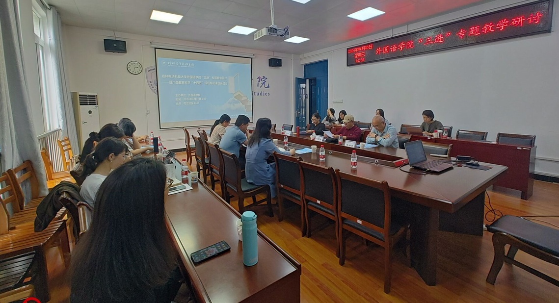 学院党委书记杨丹江首先介绍了本次活动的缘起和目的以及学院近年来相关工作取得的成绩。随后,黄宇元、黄秋萍和朱敏分别汇报了自己申报主持的广西教育科学“十四五”规划“三进”工作专项课题的主要内容。学院“三进”课程建设负责人李倩梅、莫如愚也在会上分享了她们的课程建设情况。与会专家给予了高度评价,并就进一步开展深入研究和实践提出了非常全面的富有建设性的指导意见。黄宇元院长做了总结讲话,强调了推进“三进”教学工作的重要性,并表示学院将以此次研讨会为契机,继续深化教学改革,加强课程建设,取得更多更好的成绩。