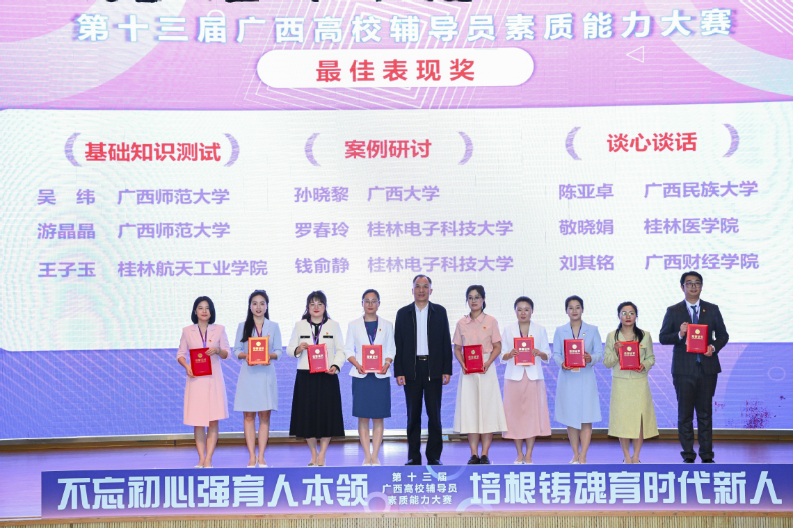 本次大赛共历时三天,分为基础知识测试、案例研讨、谈心谈话三大环节,全区高校共计108名优秀辅导员代表参赛。我院辅导员赛前认真准备、刻苦训练,比赛中稳定发挥、沉着应对,最终脱颖而出,充分展现了扎实的理论功底、过硬的业务素质和良好的精神面貌。