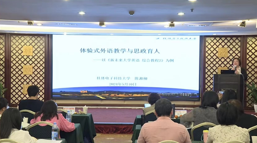 5月10日,由外语教学与研究出版社和华南师范大学外国语言文化学院共同主办的大学英语教学创新与发展研讨会在广州举行。研讨会主题为“推动教育数字化转型,深化跨文化思辨育人”。我院副院长陈湘柳教授及大学英语系教师参会,陈湘柳受邀在会上作了题为“体验式外语教学与思政育人”的主旨发言。