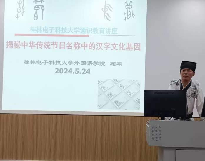 5月24日,“揭秘中华传统节日名称中的汉字文化基因”讲座在花江校区第三教学楼3203教室举办。本次讲座由汉语国际教育系顾军博士主讲,吸引了多个学院的学生参加。