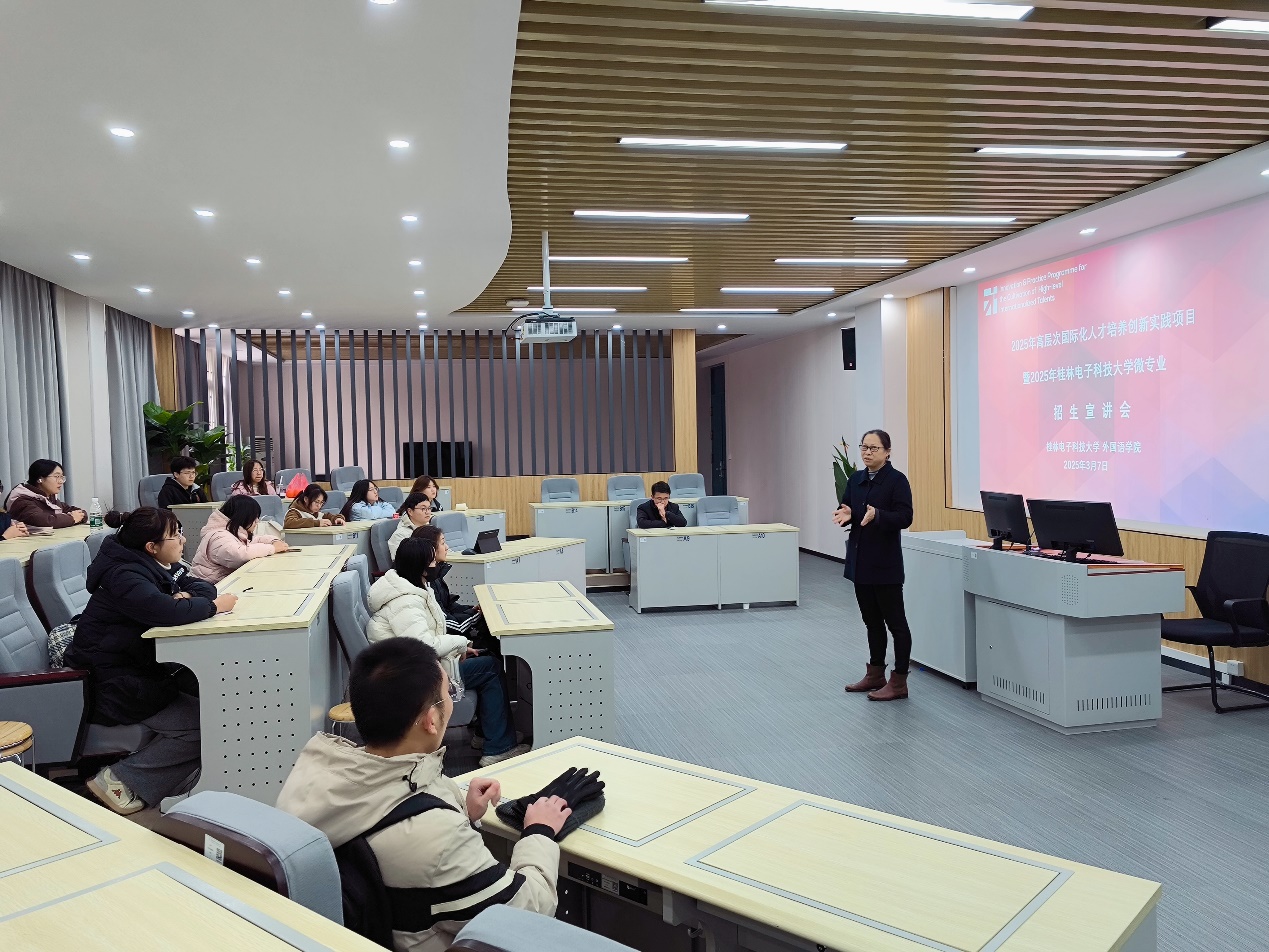 3月7日,学校第八期“高层次国际化人才精英班”(以下简称“精英班”)暨“国际治理”微专业和“英泰双语与全球胜任力”微专业招生宣讲会在花江校区3203教室举行。学院院长助理黄晓玲、精英班负责老师杨华、精英班班主任李攀攀参加宣讲会。
