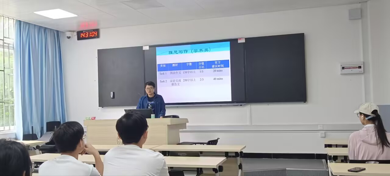 5月24日,我院朱敏老师在花江校区第17教学楼210教室举办“雅思写作技巧”通识讲座。