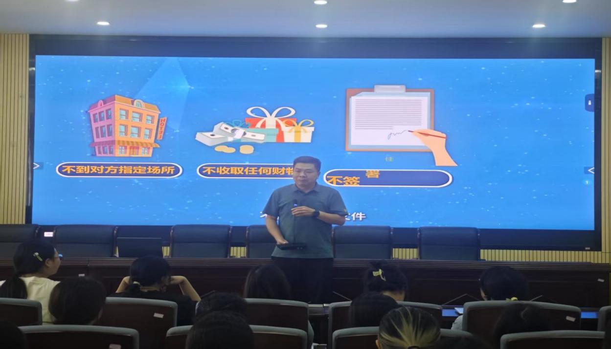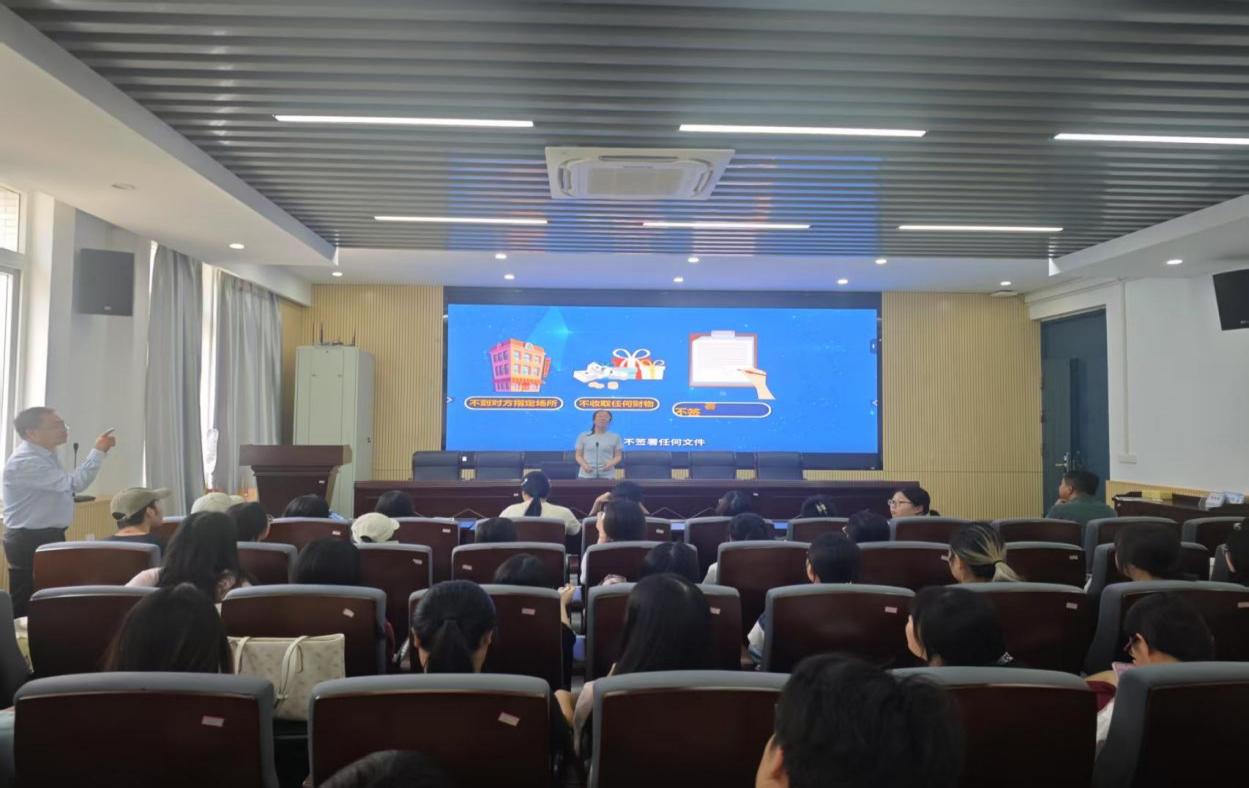 6月3日,“外国语学院2025年暑期赴泰实习行前安全教育”在花江校区第三教学楼3305报告厅举行。学院党委书记杨丹江出席会议,汉语国际教育专业包伦田老师及2022级全体学生参加。汉语国际教育系主任周毅敏主持会议。